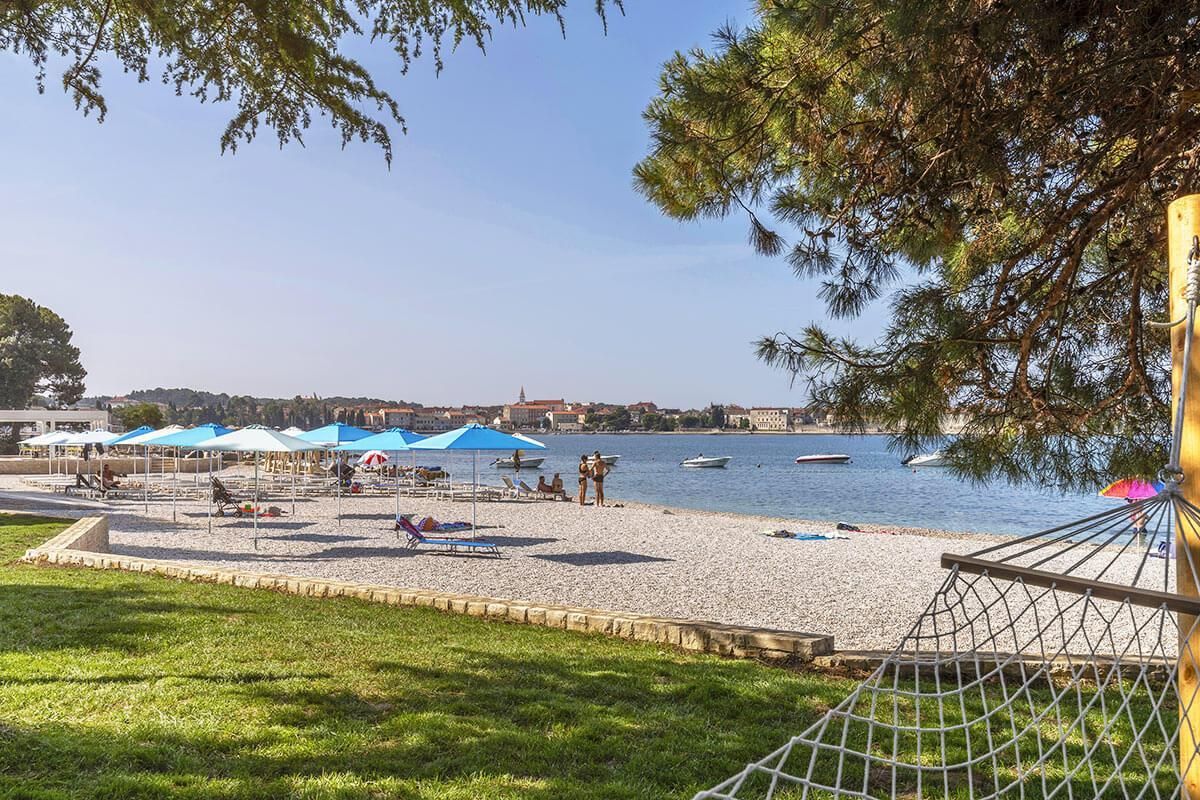 Val Parentino Family plaža, hladovina borova i ležaljke s pogledom na Poreč upotpunit će Vaš idealni odmor.